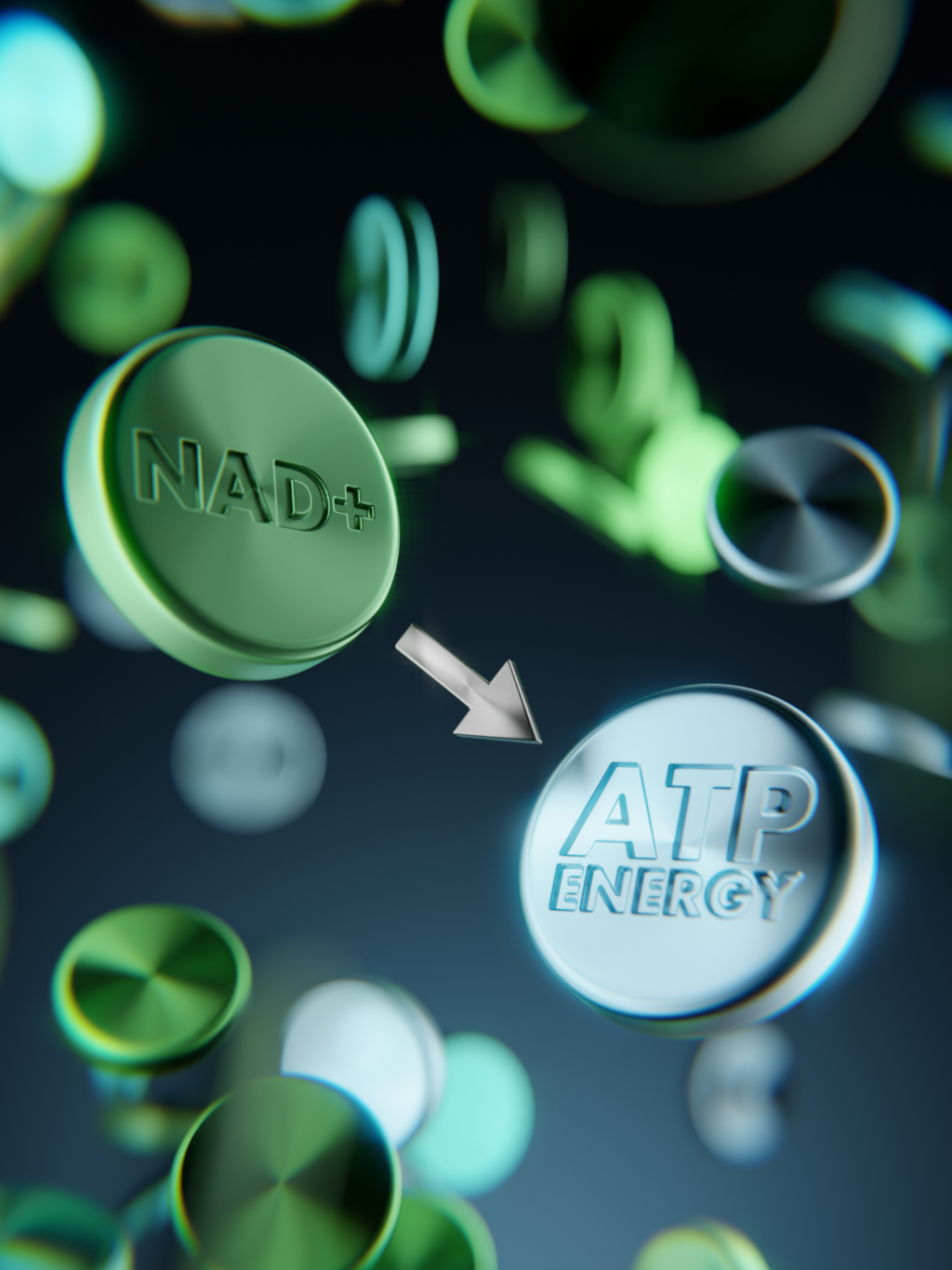 Your body needs NAD+ to make the energy molecule ATP — as NAD+ levels decline, so do energy levels.¹¹